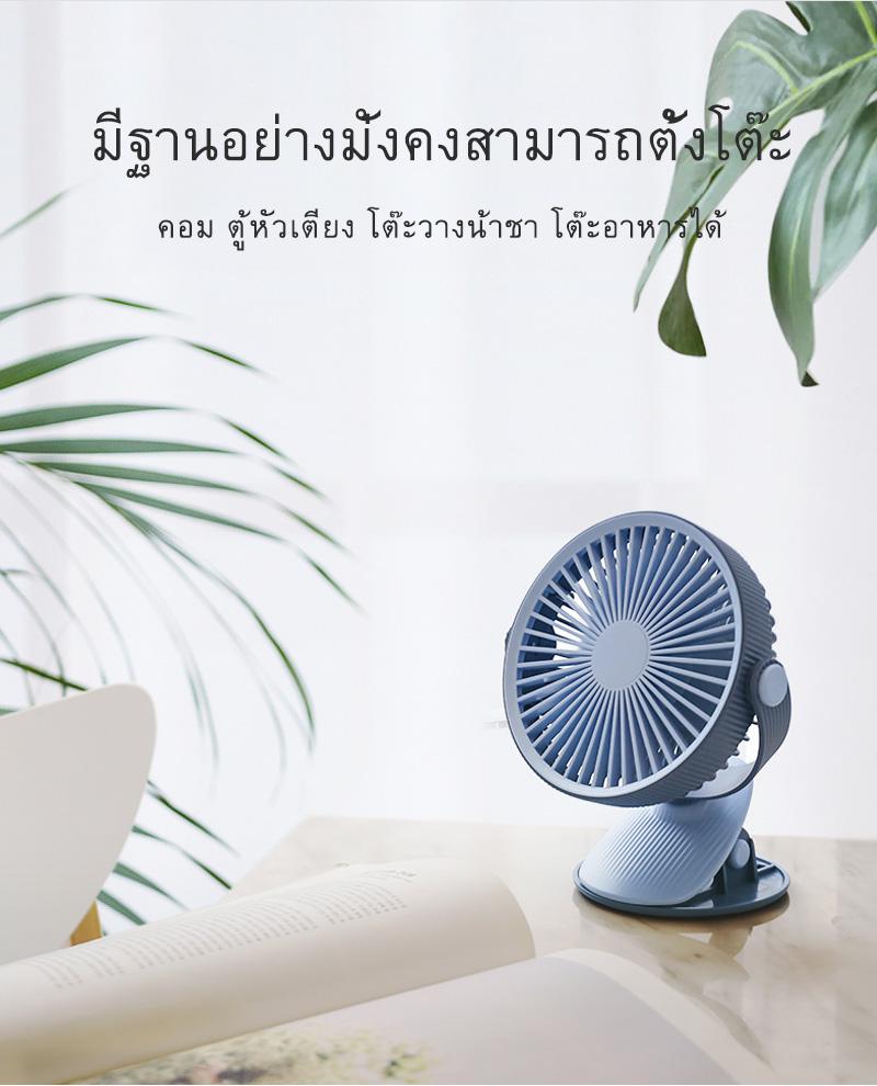 พัดลมพกพา ที่สามารถหมุนได้ถึง 720 องศา มีขาหนีบทำให้สามารถใช้งานได้กับทุกพื้นที่โดยปราศจากความกังวลใจ มีแบตฯในตัว ที่สามารถใช้งานได้อย่างยาวนานถึง 10 ชั่วโมง เลยทีเดียว