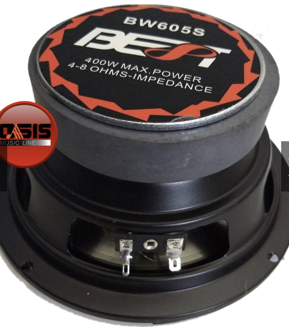 ลำโพง 6.5 นิ้ว BEST BW-605 เป็นลำโพงแบบมีลำโพงวูฟเฟอร์ขนาด 6.5 นิ้ว วัสดุกรวยลำโพง PP แบบอีเล็คโทรเพลทติ้ง ขอบทำจากยาง ช่วงความถี่อยู่ที่ 48Hz-5KHz กำลังขับสูงสุดที่ 400 วัตต์ ค่าความต้านทานอยู่สูงสุดที่ 8 โอห์ม